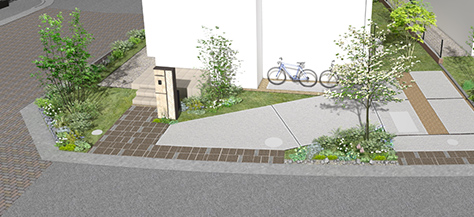 ※植栽の樹種・大きさについては、未確定となっており、竣工時には完成予想図程度に成長してはおりません。